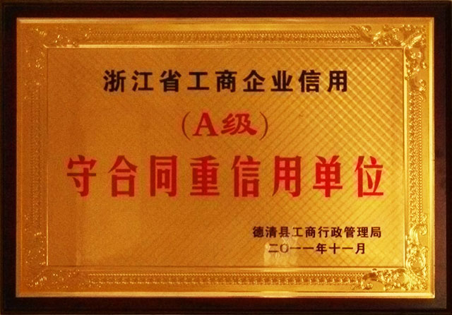 <p>浙江省工商企业信用（A级）守合同重信用单位</p>